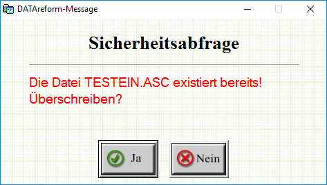 Existiert die Datei bereits, dann wird noch eine Sicherheitsabfrage angezeigt: