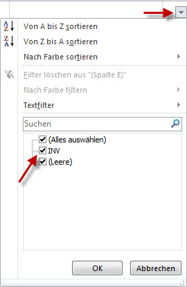 Indem man in der Spalte E auf den Pfeil nach unten klickt so erscheinen
